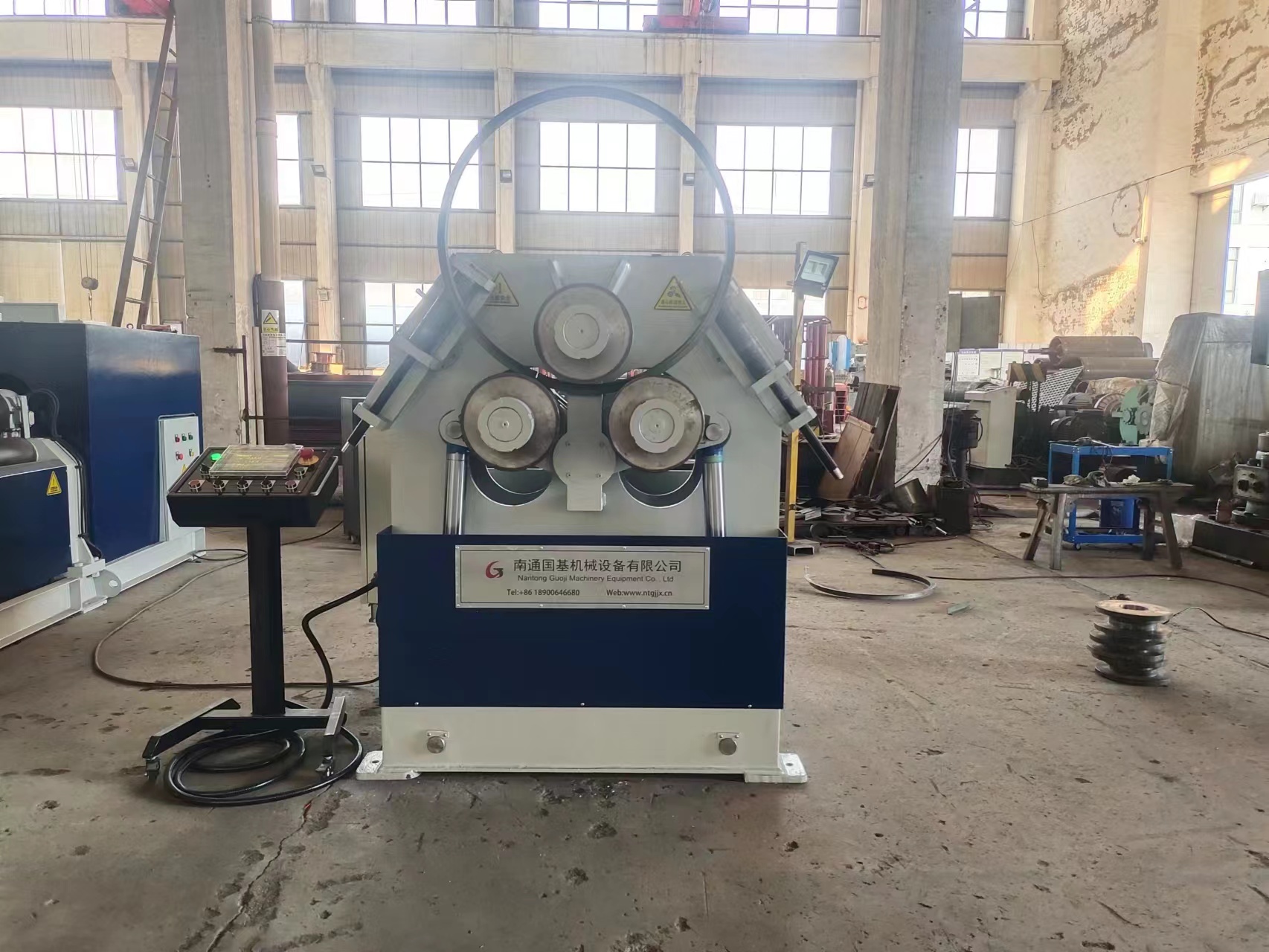 GJW24S系列型材彎曲機或滾彎機的工作原理GJW24S系列型材彎曲機是彎曲扁鋼、方鋼、圓鋼、角鋼、H型鋼、槽鋼、方管、矩形管、圓管等型材的設備。被廣泛應用于鍋爐、造船、水電、金屬結構等及其他行業各種圓形、弧形、螺旋形、橢圓形、法蘭形等工件的制作。具有預彎,卷圓和校圓等功能;本機結構先進,功能全,可根據用戶使用情況選擇立放或臥放,可根據用戶的要求訂制不同的模具。 該GJW24S系列型材彎曲機為弧線下調式結構,上下輥均為主傳輥,液壓馬達驅動,兩個下輥圍繞上輥作弧線升降運動,液壓油缸控制,位移顯示。兩側設有托輥裝置,有利于控制型材成型過程,有利于保證非對稱截面型材的卷制質量。可以根據卷制型材的不同,選用不同模具,該機操作方便、效率高,倍受用戶歡迎。 該機主要由機架部分、主輥部分、托輥部分、模具、電氣部分和液壓系統等組成。 1、機架部分機架由鋼板焊接而成,有足夠的強度和剛度,焊后經熱處理去除應力,再由數控鏜銑床加工,確保機床的精度和可靠性。抗扭斷面系數高,強度剛性均好。安裝,使用方便。 2、主輥部分(1)上輥部分上輥部分由液壓馬達、上輥、雙列調心軸承等組成。雙列調心軸承采用低速、重載的調心滾子軸承。上輥材質為42Crmo,粗加工后熱處理,表面硬度HB240-300. (2)下輥部分下輥部分由液壓馬達、變速齒輪組,下輥軸承座、下輥油缸、下輥、雙列調心軸承等組成。下輥由油缸驅動升降,配合卷制不同直徑的型材。下輥材質為42Crmo,粗加工后熱處理,表面硬度HB240-300.下輥升降油缸材質為45#鍛件,活塞桿表面鍍鉻,精磨。雙列調心軸承采用低速、重載的調心滾子軸承。 (3)托輥部分托輥部分由托輥、托輥油缸、托輥座、軸承等組成。托輥有三個運動:(1)升降運動;(2)前后運動;(3)旋轉運動。托輥有利于在卷制過程中矯正型材的位置,保證型材在卷制過程中的成型質量。兩組托輥共由6個油缸控制運動,配合卷制不同直徑的型材。托輥材質為45#鋼,粗加工后熱處理,表面硬度HRC40-45。 托輥升降油缸材質為45#鍛件,活塞桿表面鍍鉻,精磨。 (4)模具模具根據客戶的卷制型材來確定,不同的型材種類,規格,都可能需要不同的模具。模具材質為42Crmo,粗加工后熱處理,表面硬度HRC40-45。